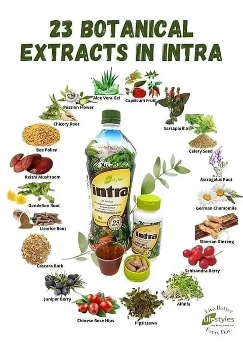 Dit baanbrekende product helpt je immuunsysteem te versterken en biedt een effectieve bescherming tegen schadelijke invloeden van buitenaf. Met ingrediënten zoals aloë vera, cayennepeper en reishi paddenstoel bevordert Intra Juice niet alleen je energie en vitaliteit, maar helpt het ook je lichaam te ontgiften en hormonen in balans te brengen.